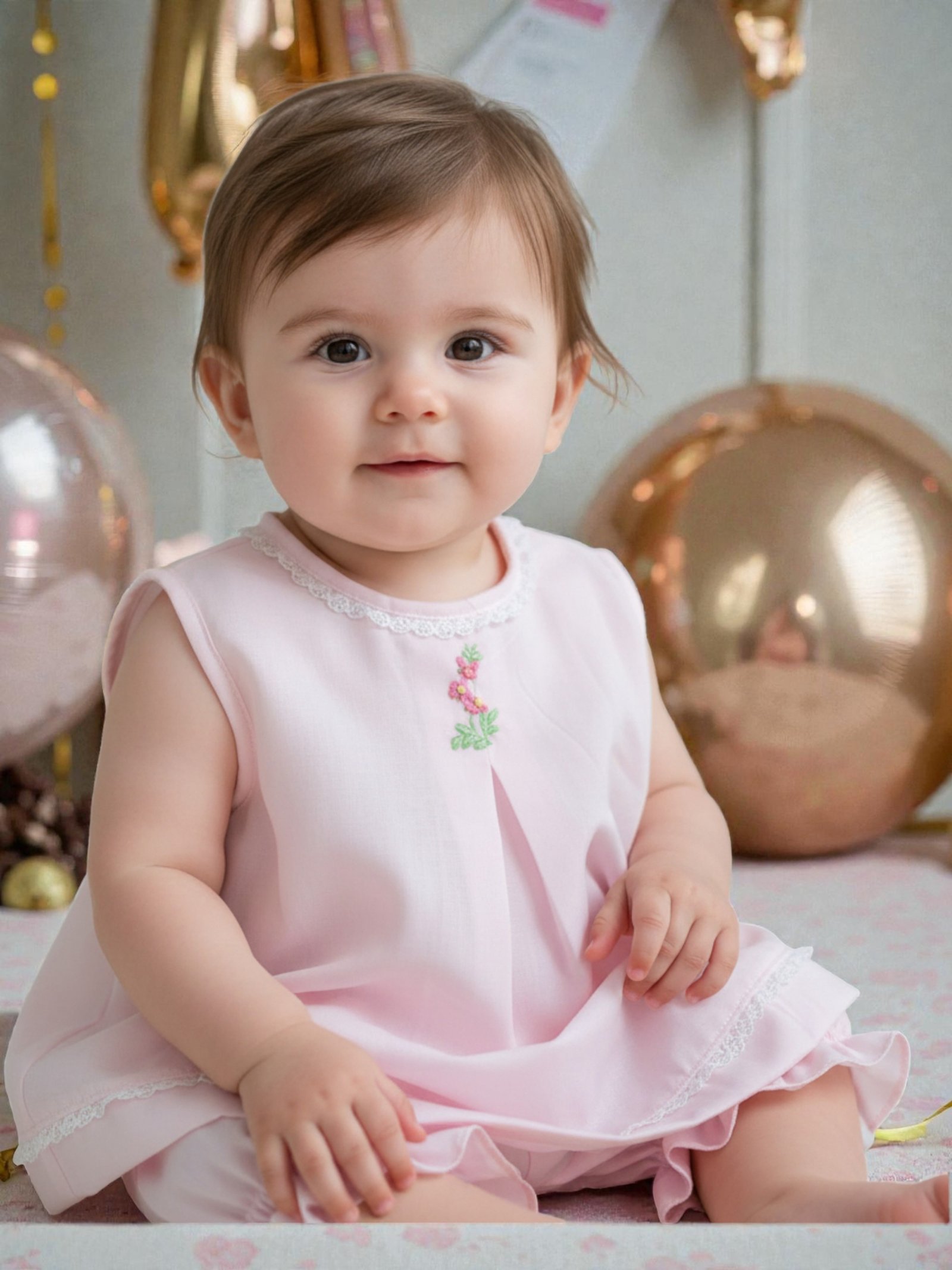 This baby pink outfit is a timeless choice for celebrations, portraits, or any day that deserves a touch of elegance. Crafted with a delicate aesthetic, it balances classic charm with modern comfort.